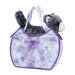 Cozily nested inside the purse is a sweet gray and white cat plush toy that makes this already enchanting purse even more special. The cat is soft and cuddly, with a fluffy gray coat and bright, expressive eyes that seem to radiate warmth and affection.